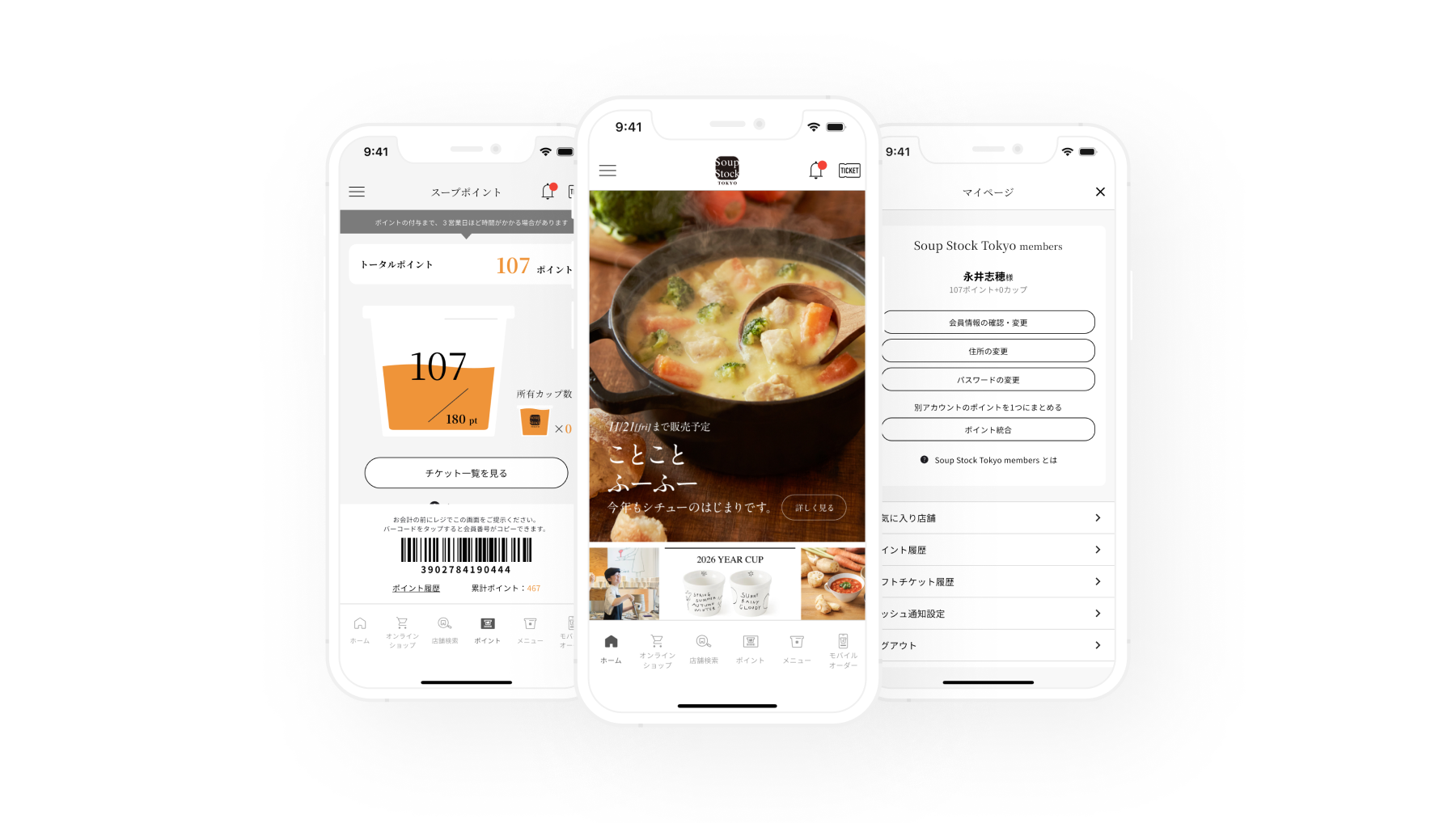 既存アプリの開発案件を依頼した時、ポイント画面のスープカップのスープをデバイスの傾きに合わせて揺れる仕様にして欲しいとお願いしました。機能的には無駄もある部分だったのですが、実現したいことを話すと「なぜその表現をしたいのか」を理解してくれ、機能面・表現ともに思い描いていた形につくってくれました。最初依頼した時は少し難しい顔だったアクトビのみなさんが2日ほどであっという間に実現してくれ、本当にスピードが速く、私たちに寄り添った対応だと感じました。 アプリの今後について相談した時も藤原さんが、ネイティブアプリを開発する場合どんなイメージの物になるのか、機能構成やフォントデザインなどスープストックトーキョーの世界観に沿って細部まで表現したモックを作成して提案してくれました。 スープストックトーキョーでは自社の世界観を大切にしています。企業理念の“世の中の体温をあげる”にもあるように、アウトプットするものは全て、裏側で制作している人も含めてそこに関わっている人たちの人格のようなものがにじみ出てくるような、「人の温もりが伝わること」を大事にしています。 この世界観を理解してくれた上で、完全に自分ごととして一緒に考え動いてくれていたこともあって、他のベンダーを検討することもなくアクトビさんにお願いしました。