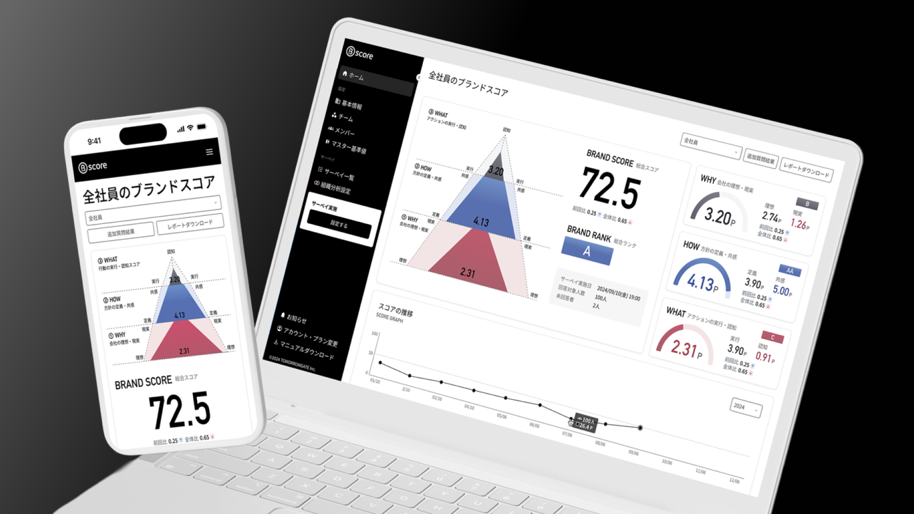 トゥモローゲート株式会社さまは、企業の魅力を最大限に引き出す「ブランディング」を主軸に、ロジックとデザインで全国400社以上を戦略的にサポート。「ブラックな企業」というキャッチコピーでSNS発信にも注力しています。同社より2025年4月に正式リリースされたブランドサーベイ「B‑SCORE」は、β版を含むリリースからわずか10ヶ月で190社以上に導入される、企業ブランド力を可視化できるサービスです。構想から長年停滞していたこのプロダクトを“1年以内にリリースしたい”。そんな思いでご相談をいただいたアクトビは、現環境の整理から参画し、サービスの正式リリースまでを伴走、新しい要望や課題の解決なども実施しています。